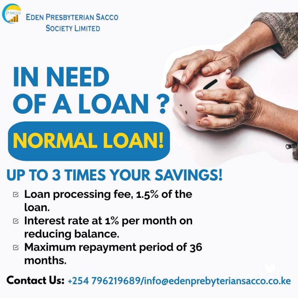 You can download the application form below to apply and submit your forms to info@edenpresbyteriansacco.co.ke along with all required attachments.
